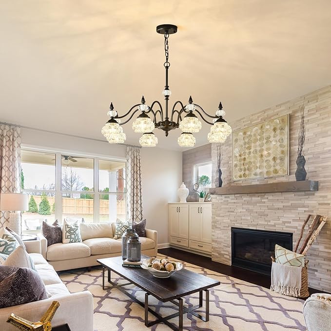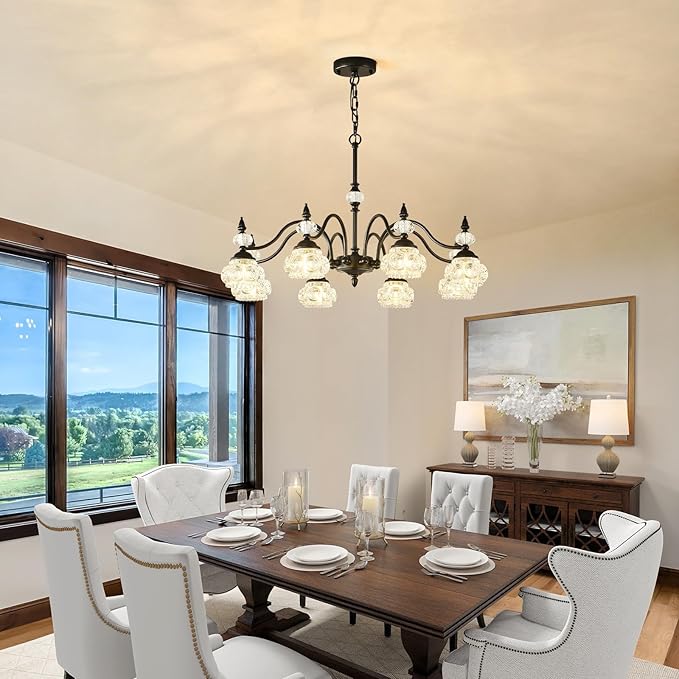 - Easy Installation -- The package includes all installation accessories and instructions, facilitating quick and effortless installation. This 8-light dining room chandelier comes with a 47.2-inch chain and you can also remove some chain links to reduce the hanging height (maximum hanging height 63.3 inches). It is suitable for flat, sloped, or even vaulted ceilings