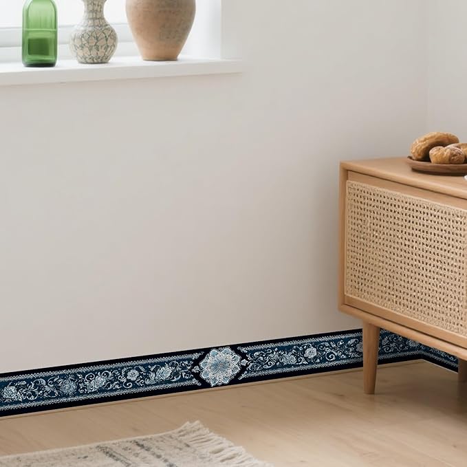 - The 2D printed blue floral medallion pattern gives it an elegant and centered look, and the material is sturdy for lasting use.