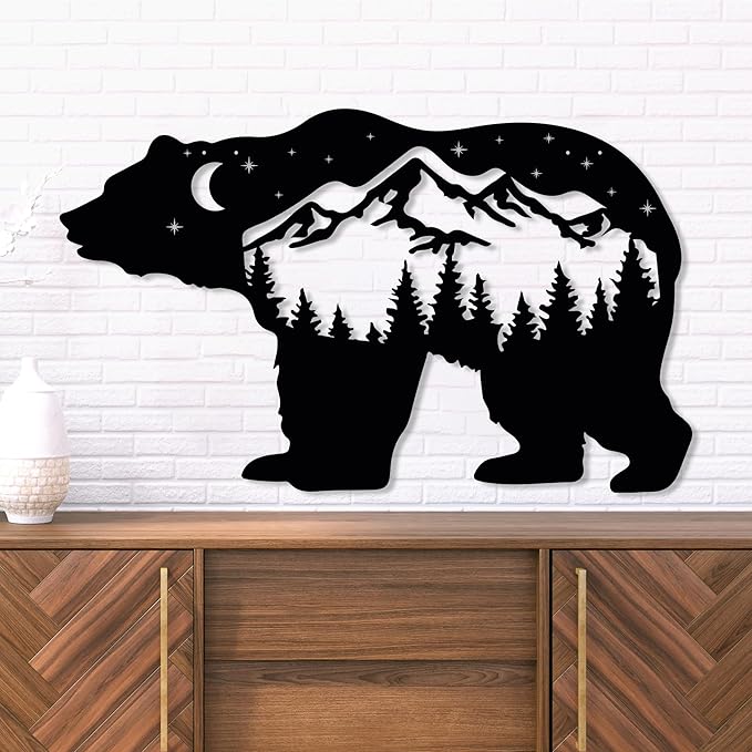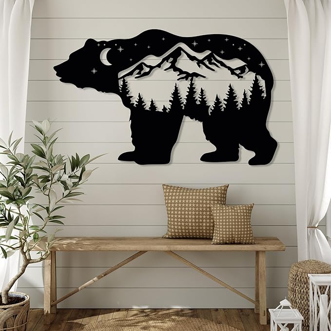 Bear Metal Wall Art, Decorative Mountain Forest Wall Decor, Farmhouse Decor, Large Wall Decorations for Outdoor, Nature & Wildlife Sign, Bear in the Woodland, Animal Wall Art, Hunter Gift