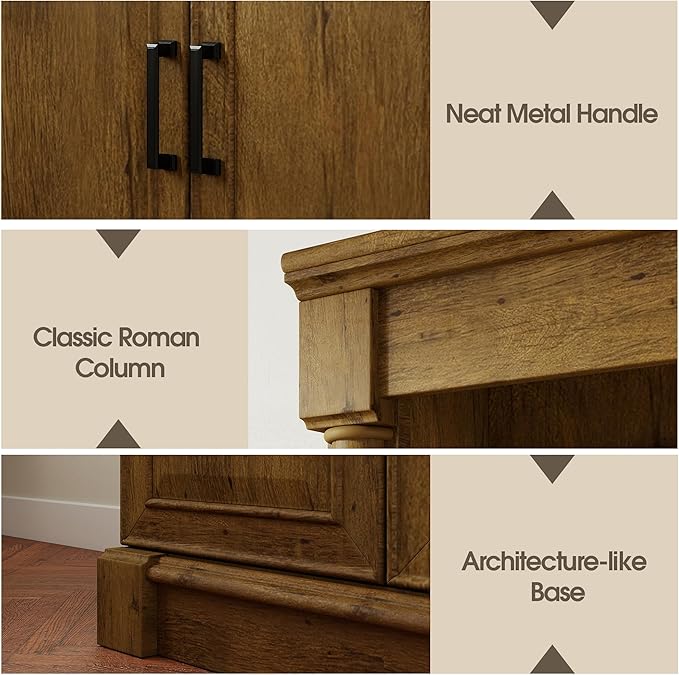 - 【Hidden order behind classic beauty】The lower double-door cabinet conceals everyday clutter — from electronics and paperwork to children’s toys — leaving your home calm, organized, and visually harmonious. Inside, a spacious adjustable shelf maximizes flexibility for various storage needs, so everything has its place behind beautifully paneled doors.