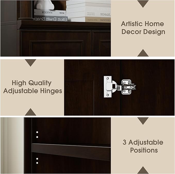 - 【Hidden order behind classic beauty】The lower double-door cabinet conceals everyday clutter — from electronics and paperwork to children’s toys — leaving your home calm, organized, and visually harmonious. Inside, a spacious adjustable shelf maximizes flexibility for various storage needs, so everything has its place behind beautifully paneled doors.