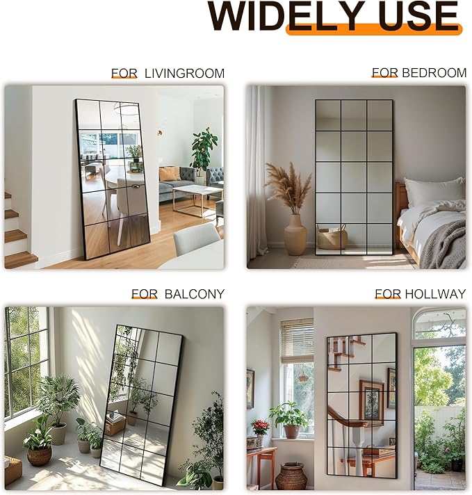 - Versatile for Various Spaces: Whether enhancing your living room, bedroom, hallway, or dining room, this wall mirror complements modern minimalism and industrial chic with its clean, architectural lines. Its use as a large wall mirror for living room or full size mirror for bedroom makes it perfect for any décor.
