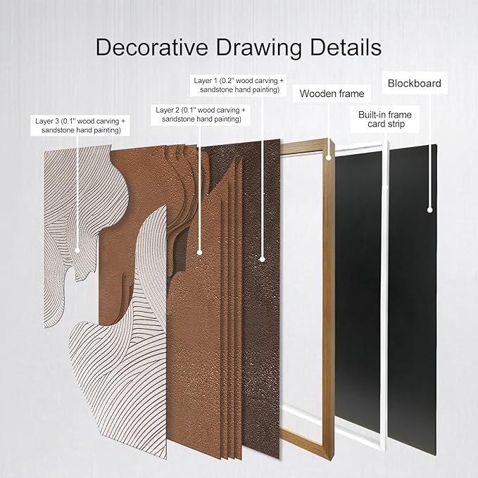 - 【Exquisite Wood Frame Configuration】 - Equipped with an exquisite wood frame, it not only effectively protects the internal relief structure but also facilitates hanging, enhancing the overall decorative quality.