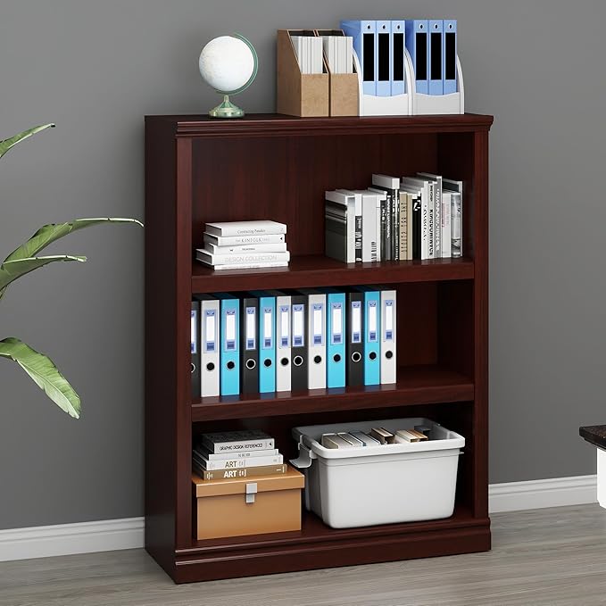 43 in Tall Bookcase, 3-Tier Bookshelf Open Storage, 33 inch Wide Floor Standing Indoor Furniture, Book Cases for Home School Library Office Bedroom Kids, Mahogany 3 Tiers