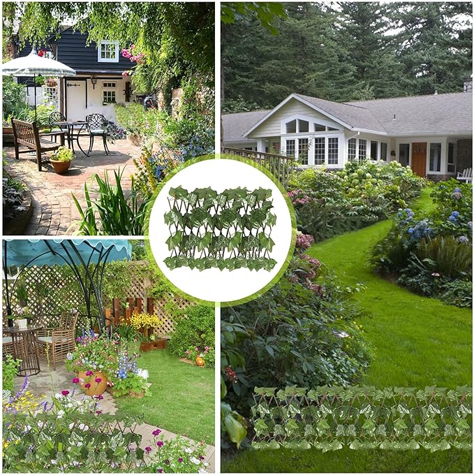 BESPORTBLE Expandable Artificial Trellis Privacy Fence with Realistic Green Leaves Outdoor Garden and Balcony Screen Protector Weather-Resistant Decorative Wall Panel for Courtyard and Patio