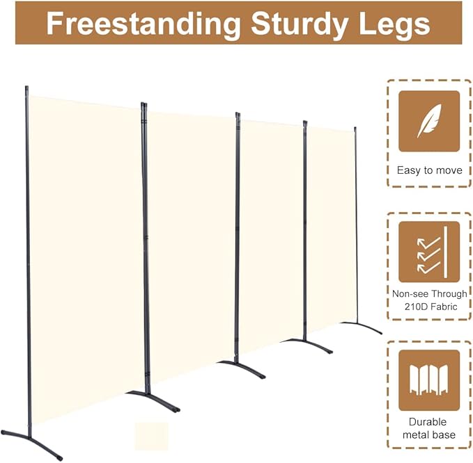 JVVMNJLK Indoor Room Divider, Portable Office Divider, Convenient Movable (4-Panel), Folding Partition Privacy Screen for Bedroom,Dining Room, Study,136" W x 19.7" D x 71.3" H, Beige